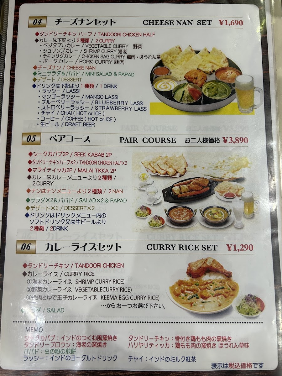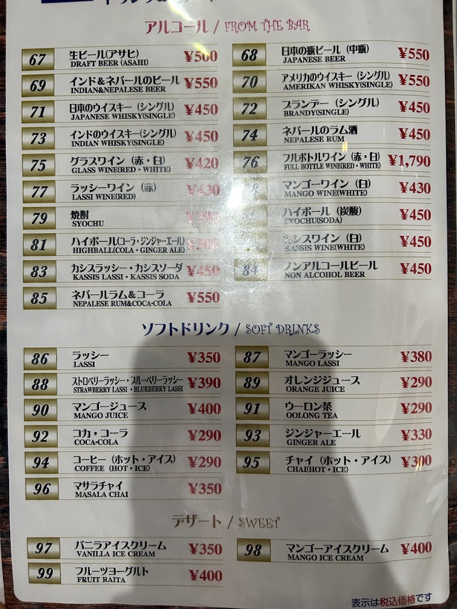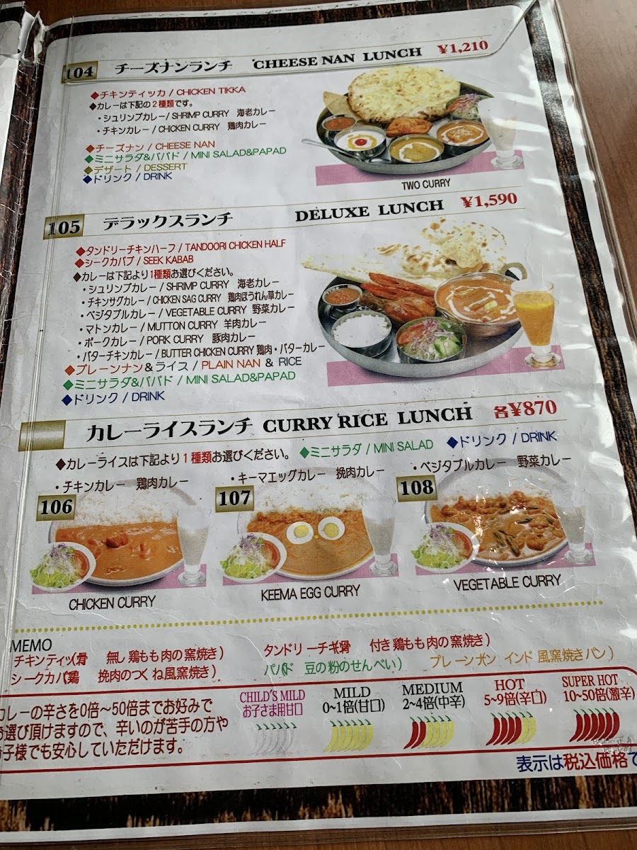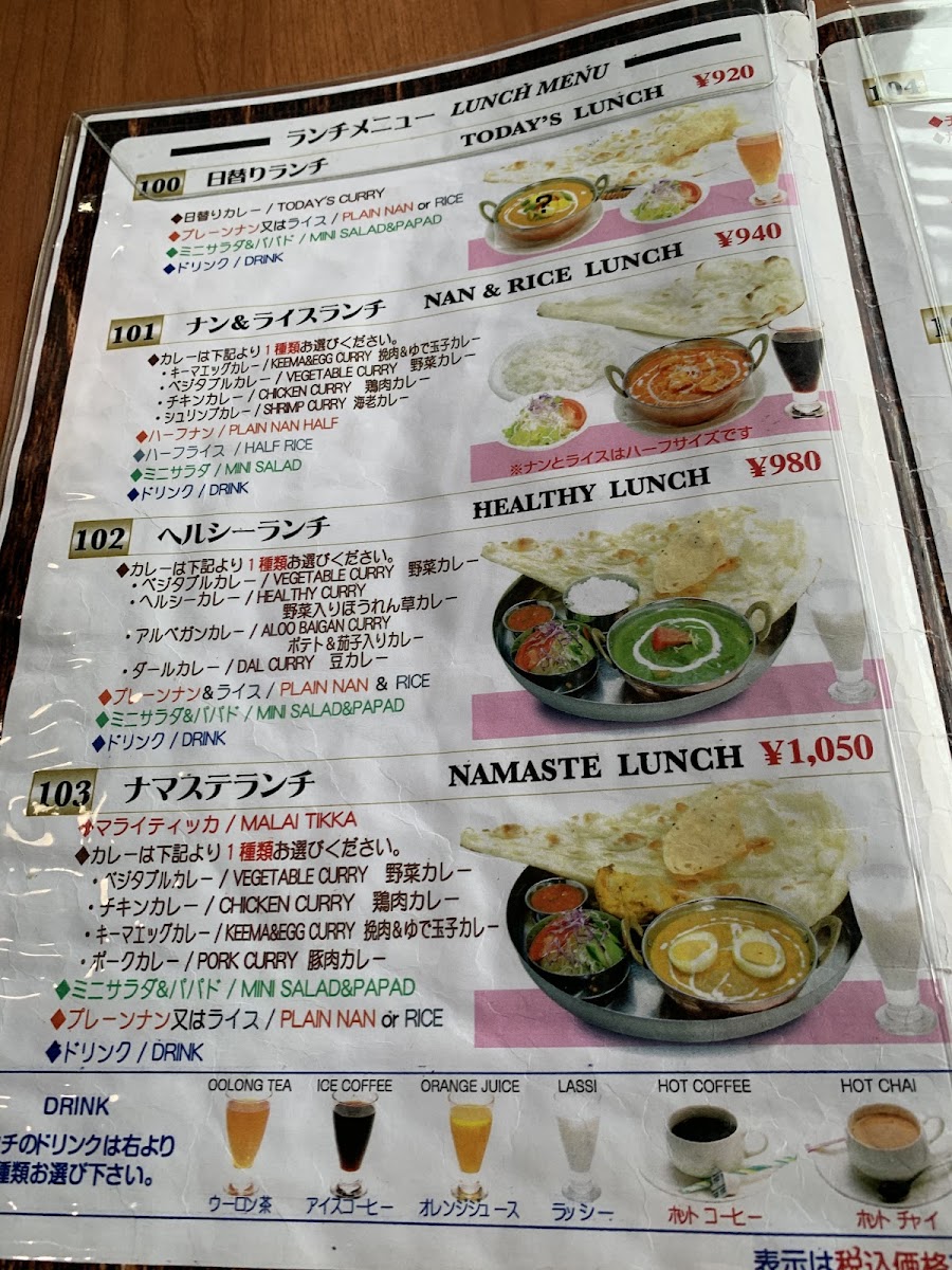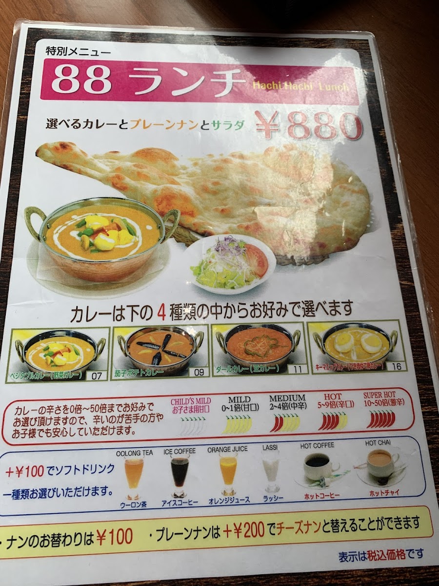 In conclusion, the menu at this restaurant offers a comforting and well-rounded taste of authentic Indian cuisine, with a clear emphasis on both variety and balance. The ヒマラヤセット カレーはキーマエッグカレー stands out as a satisfying centerpiece, pairing rich, spiced curry with complementary sides that make it feel like a complete and thoughtfully curated meal. Staples like ロティ and ほうれん草カレー highlight the kitchen’s ability to deliver both simplicity and depth, while dishes such as 野菜焼きそば and ベジタブルチョーミン bring a welcome Indo-Chinese twist that adds diversity to the menu. To round things off, the ホット チャイ provides a warm, aromatic finish that perfectly complements the savory offerings. Altogether, the menu feels approachable yet authentic, making it appealing to both newcomers and those already familiar with Indian flavors.